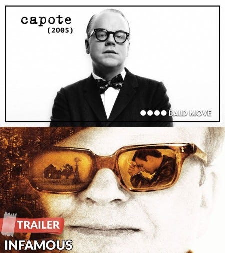 Capote (2005). Grade: C-. Infamous (2006). Grade: C-